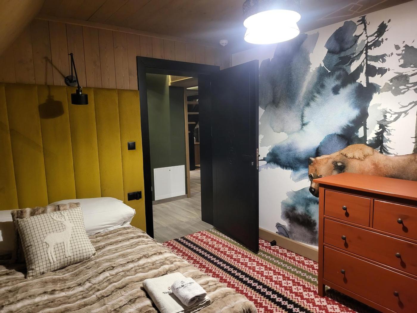 Domek. This spacious chalet comprises 1 living room, 4 separate bedrooms and 2 bathrooms with a shower and free toiletries. The well-equipped kitchen features a stovetop, a refrigerator, a dishwasher and kitchenware. Featuring a terrace with mountain views, this chalet also provides a tea and coffee maker and a flat-screen TV. The unit offers 7 beds. Domek - 10 osobowy. Powierzchnia pokoju ok.: 170 mkw.