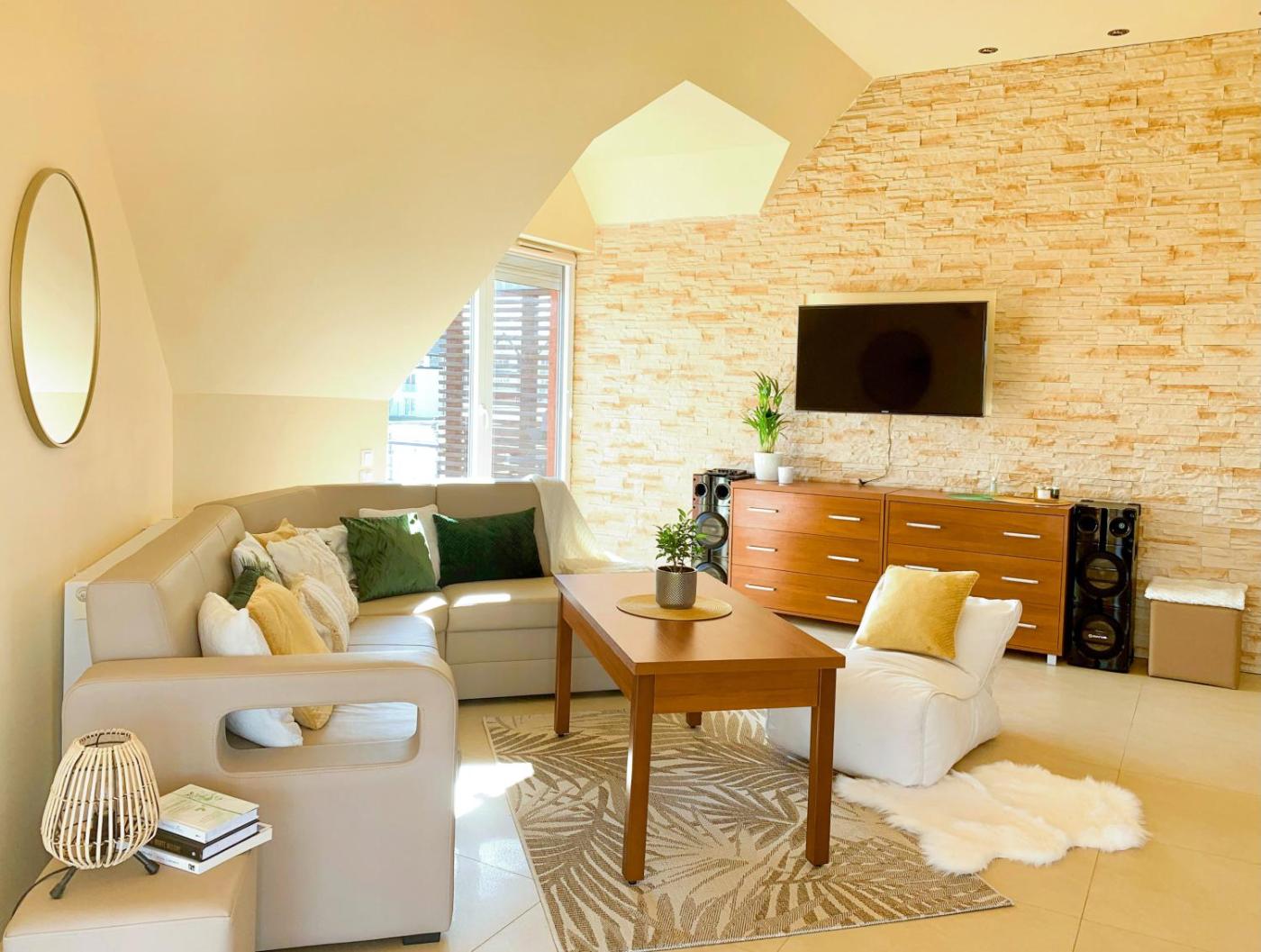 W apartamencie zapewniono taras, sypialnię (1), salon z telewizorem z płaskim ekranem, kuchnię ze standardowym wyposażeniem, takim jak lodówka i zmywarka, a także łazienkę (1) z prysznicem. Goście mogą podziwiać widok na ogród. W apartamencie zapewniono ręczniki i pościel.