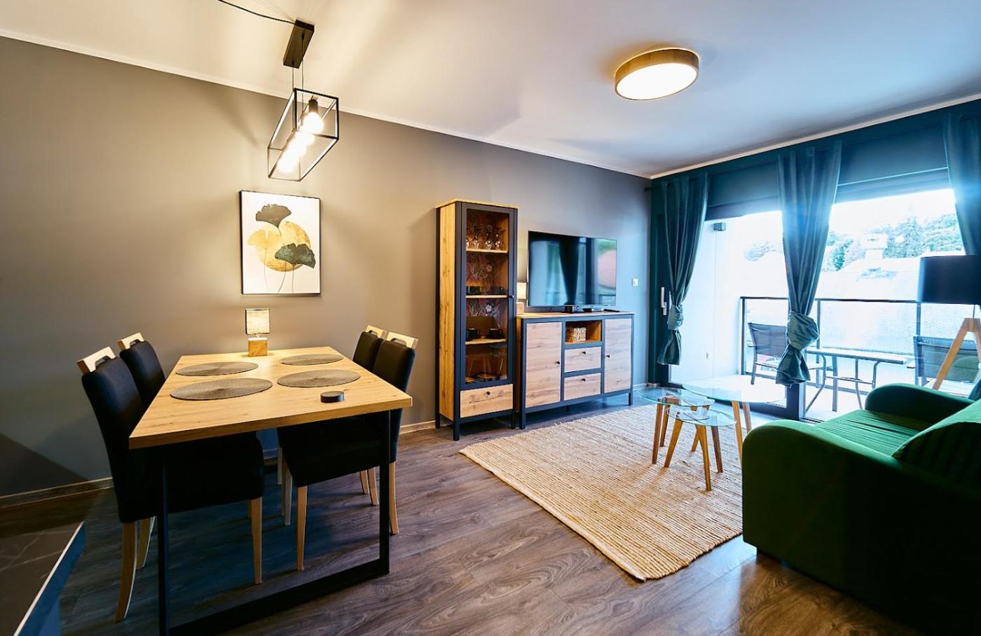 Apartament z 1 sypialnią. Meals can be prepared in the well-fitted kitchenette, which is equipped with a stovetop, a refrigerator, a dishwasher and kitchenware. This apartment features air conditioning, a dining area, a flat-screen TV and a balcony. The unit offers 2 beds. Apartament - 4 osobowy. Powierzchnia pokoju ok.: 44 mkw.