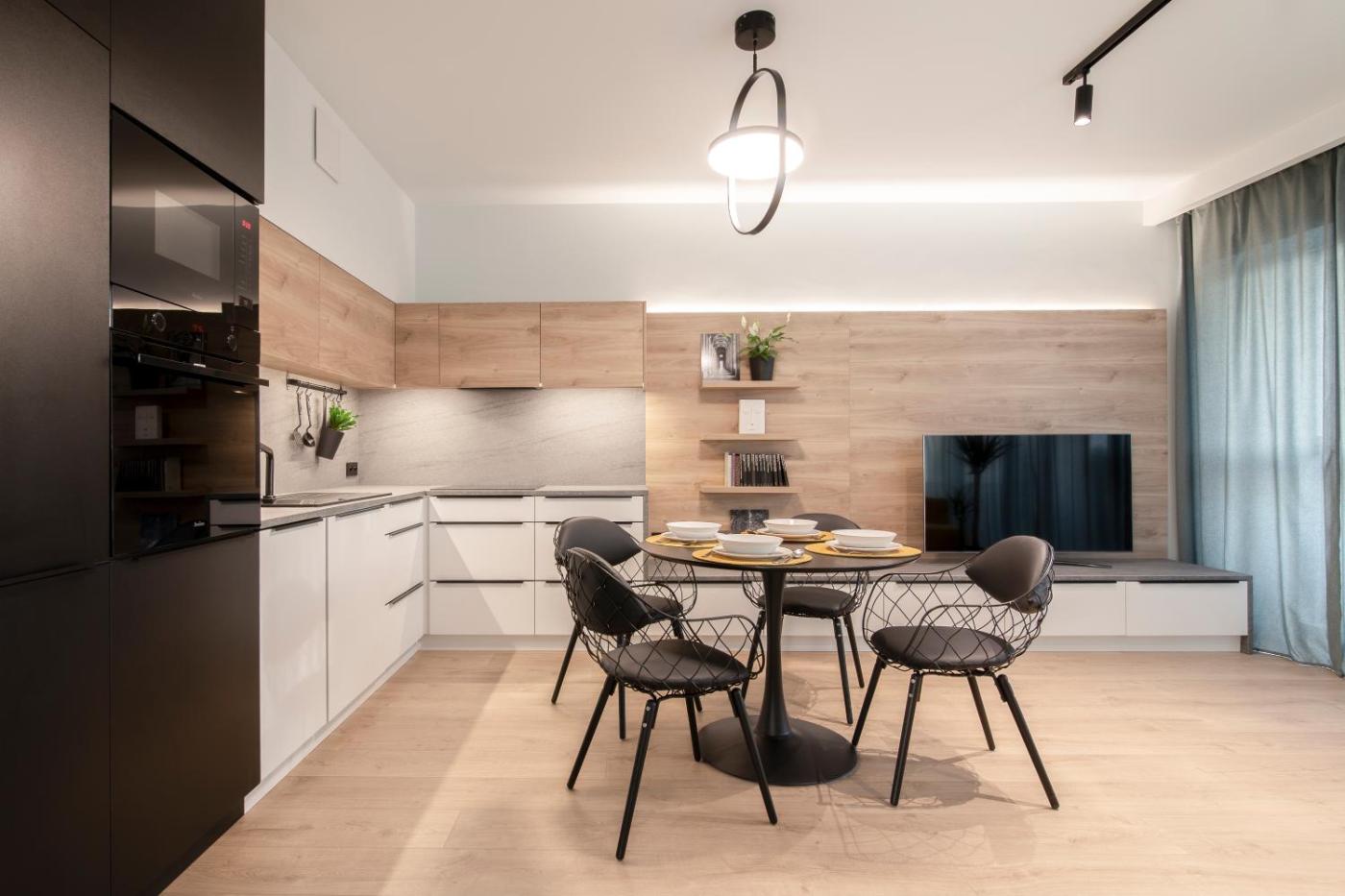 Apartament z 1 sypialnią. This air-conditioned apartment comes with 1 living room, 1 separate bedroom and 1 bathroom with a shower. In the well-fitted kitchenette, guests will find a stovetop, a refrigerator, a dishwasher and kitchenware. Boasting a terrace with city views, this apartment also features a washing machine and a flat-screen TV with streaming services. The unit has 2 beds. Apartament - 4 osobowy. Powierzchnia pokoju ok.: 55 mkw.